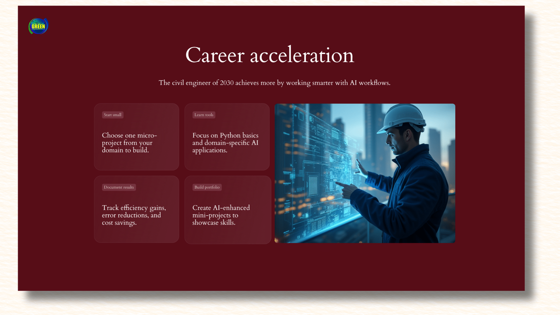 Python, Scikit-learn, TensorFlow/PyTorch, ChatGPT/Claude, Gemini, QGIS plugins, InfraTwin / iTwin.